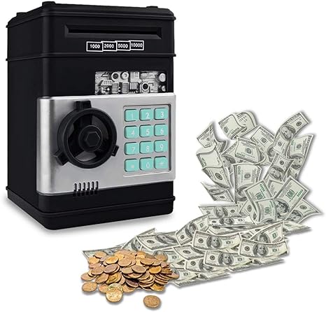 Esta alcancía tiene un diseño elegante y compacto, ideal para enseñar a los niños a manejar su dinero de bolsillo de manera planificada. Con su aspecto realista y combinación de colores coordinada, será una adición atractiva a cualquier habitación infantil.