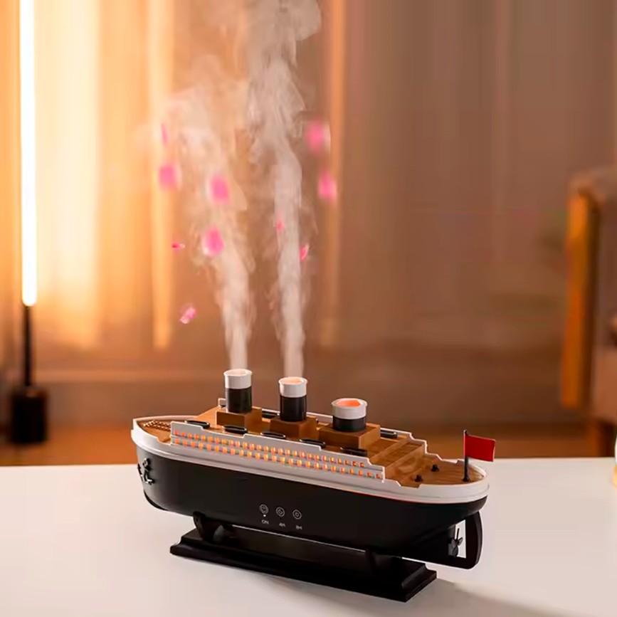 Este humidificador con forma de barco no solo mejorará la calidad del aire, sino que también llenará tu espacio con una fragancia relajante y un diseño decorativo que encanta a primera vista. Además, cuenta con control remoto para que puedas manejarlo sin moverte de tu lugar favorito. ¡Dale un toque diferente a tu hogar y siéntete en alta mar con aire fresco y perfumado!