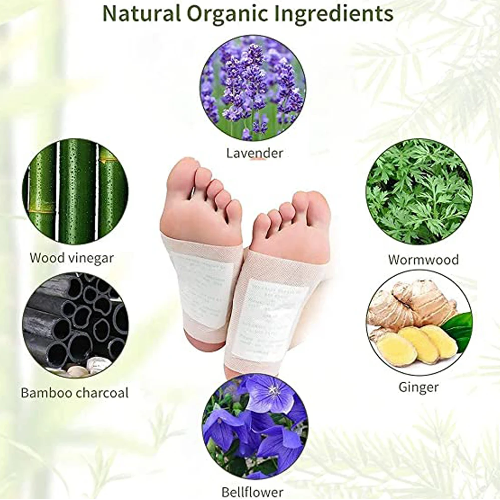 Los principales ingredientes de estos parches para desintoxicar son: polvo de jengibre, polvo de vinagre y bambú. Cada uno de estos ingredientes son conocidos por sus propiedades de desintoxicación para limpiar el cuerpo y levantar el estado de ánimo.